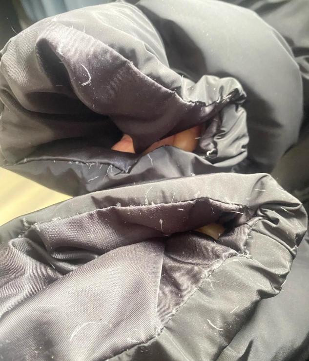 面料太薄最直接的后果就是钻绒。羽绒服里的绒毛会从面料的缝隙里往外钻,衣服外面、家里沙发上到处都是白毛毛。