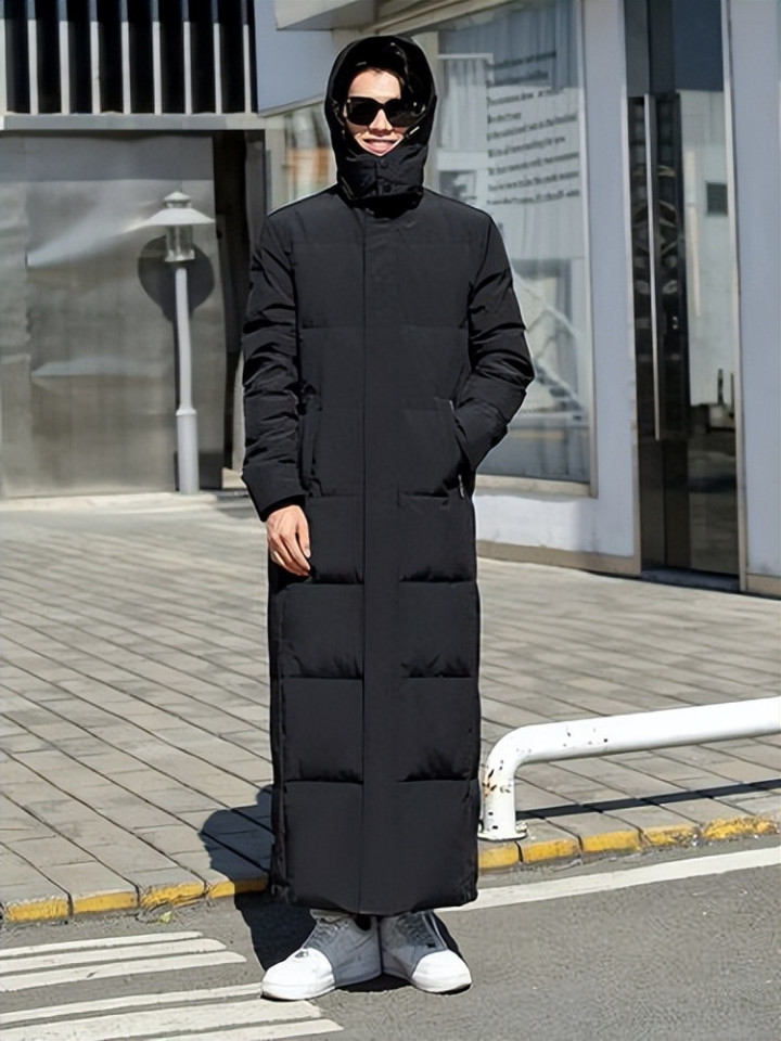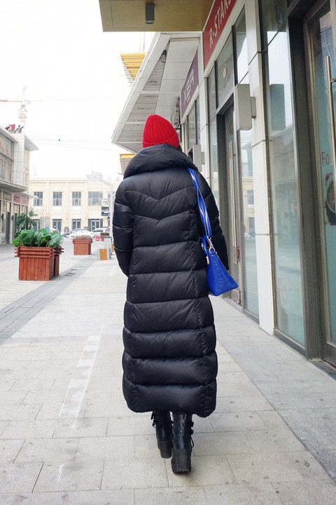 这两年特别流行那种超长款羽绒服,从脖子包到脚踝,确实看着很有气场。