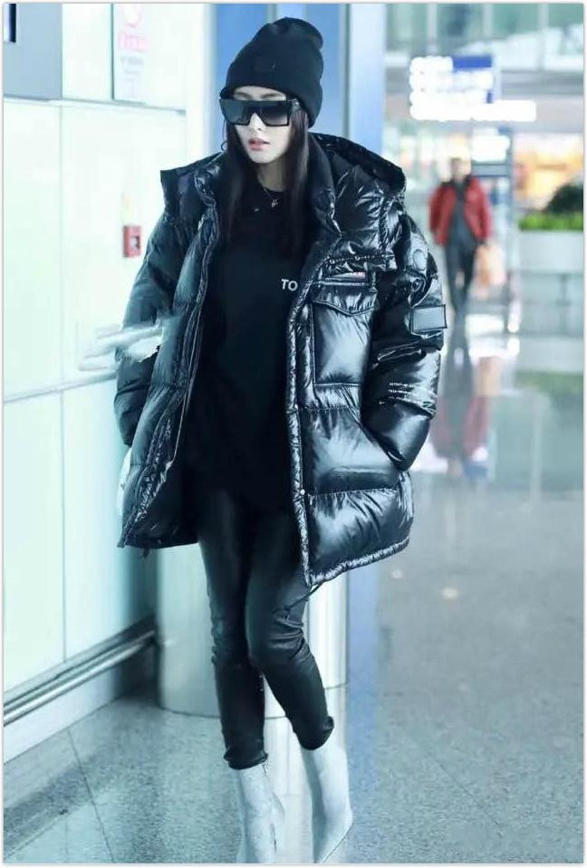 羽绒服的长度其实选到膝盖上下就够了,既能保护大腿不受冻,又不会影响行动。