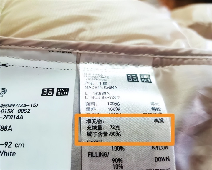 拿出来一看标签,上面写的是"含绒量70%",看着挺高的。