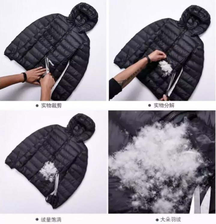 钻绒越多,保暖性就越差,最后这件衣服就变成了一块布。